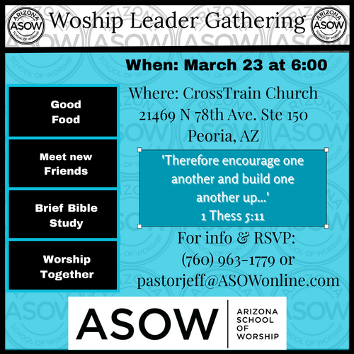 The Arizona School of Worship invites you to our upcoming Worship Leader Gathering—an evening designed to inspire, equip, and connect worship leaders from across our region.