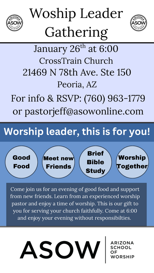 The Arizona School of Worship invites you to our upcoming Worship Leader Gathering—an evening designed to inspire, equip, and connect worship leaders from across our region.